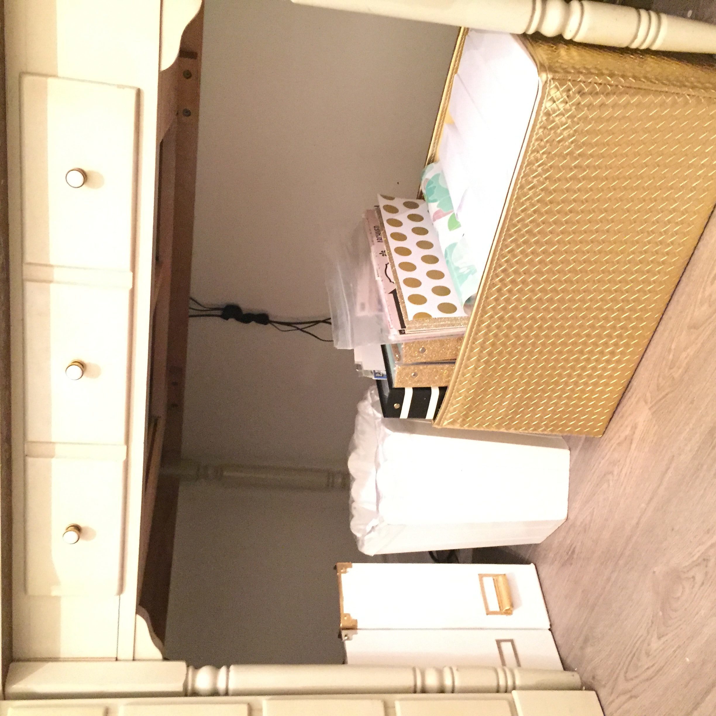 This is often a very neglected area, either things just get shoved under the desk never to be seen again, or you can see under the desk and you don’t want any visual clutter so you don’t utilize that space. There are darling boxes from the container stores but also look at Target and TJ Max those places are like a treasure trove of cute products. Make sure that if you can see under your desk you use something that matches your décor and is happy to look at. Also, it helps if it has a lid to conceal the contents, and it can slide easily either with felt or wheels.