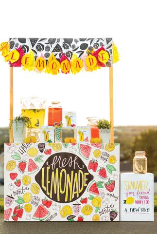 I love how she used crates for her lemonade stand. it’s such a simple idea and it looks so stinking cute. besides the kids can all pack they’re supplies into the crates when they are done and haul it home. The chalk board tags are just darling and the little stickers are the sweetest things in the world. I love how she pared it with the gingham paper. Too cute!
