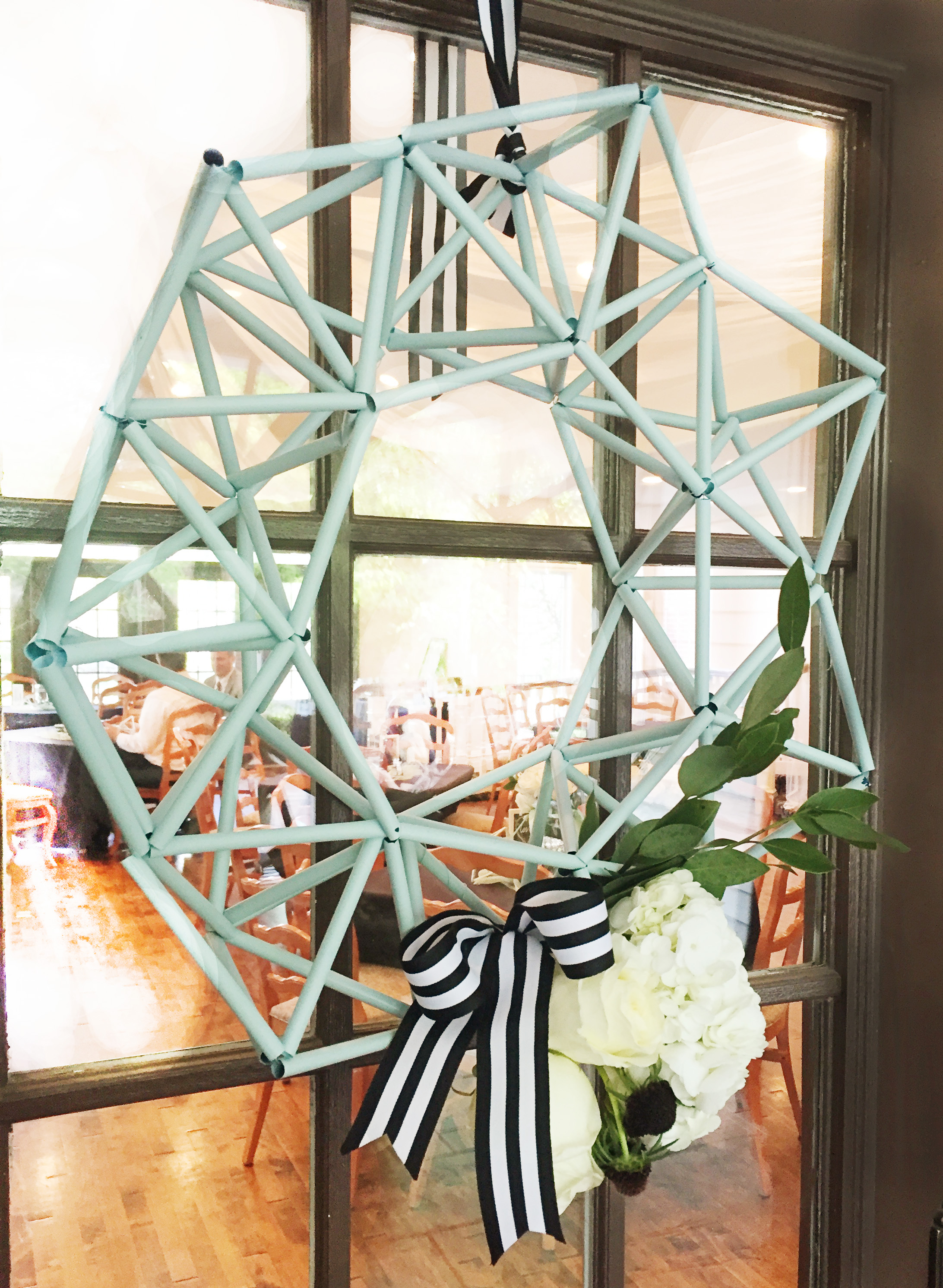 I’m so in love with this geometric wreath and shapes. I have been wanting to try my hand at making these geometric shapes for a long time. I tried so hard to source the brass tubing that is so popular for these hanging geomantic shapes but it is so pricy. So I did what anybody eles would do who is on a budget and used straws. I was working with a very darling modern bride who did not want a tradintional wedding. And a mother of the bride who did. I think that these little touches gave the bride the modern edge she was looking for and with all the fresh flowers and gorgouse center pieces the mother was happy as well.