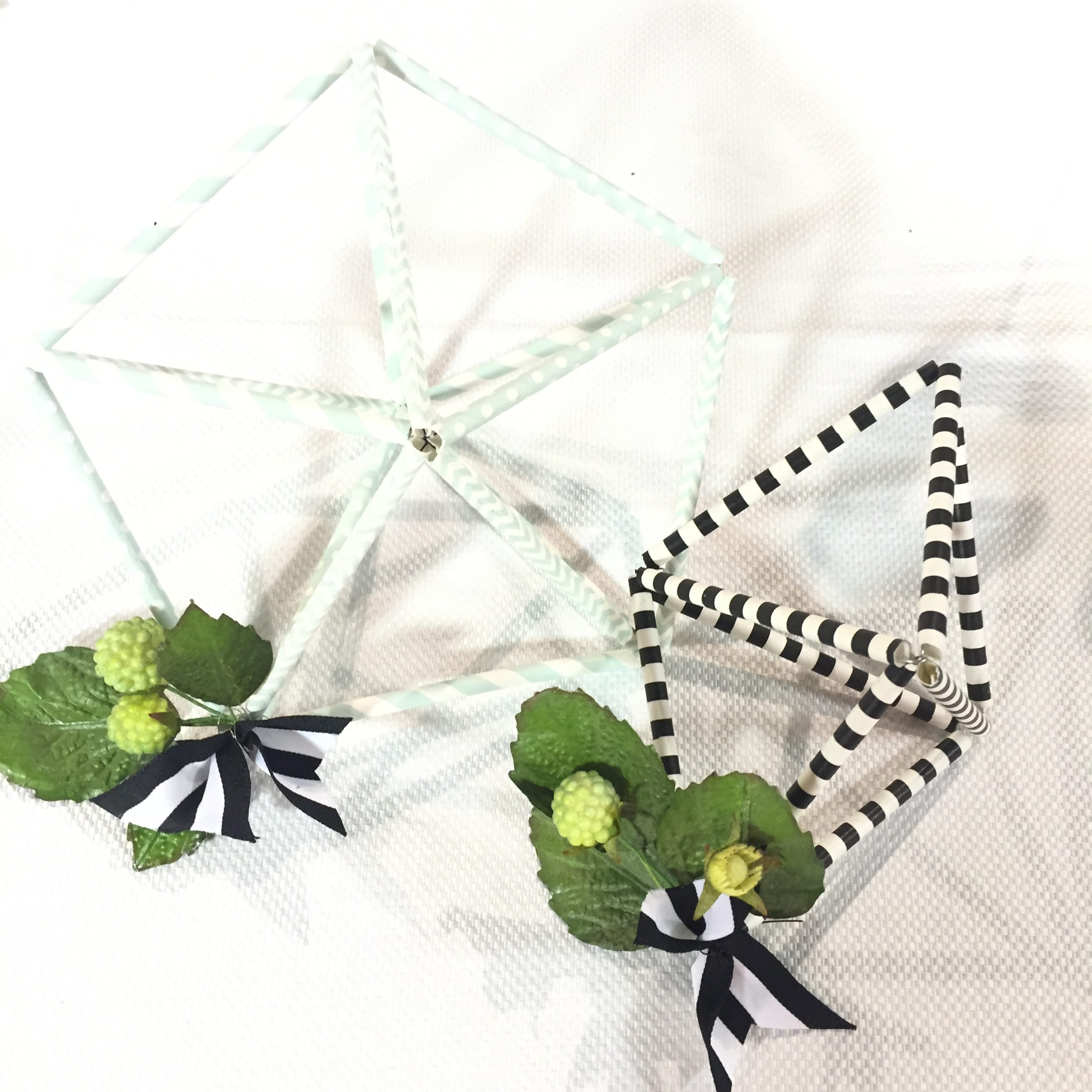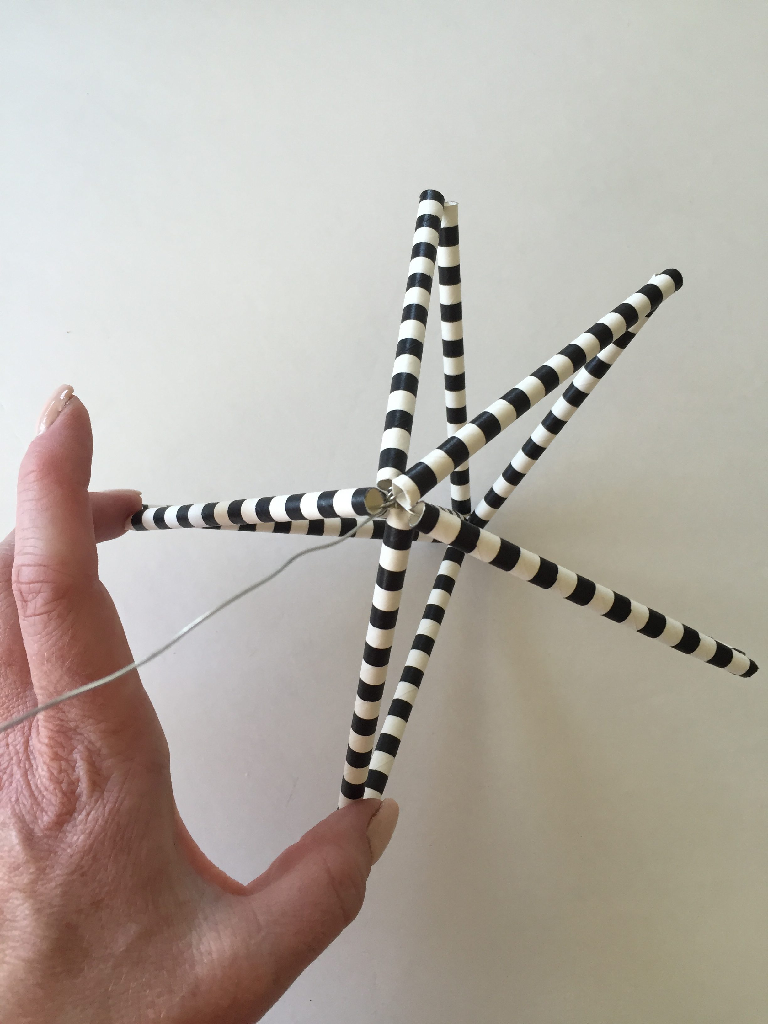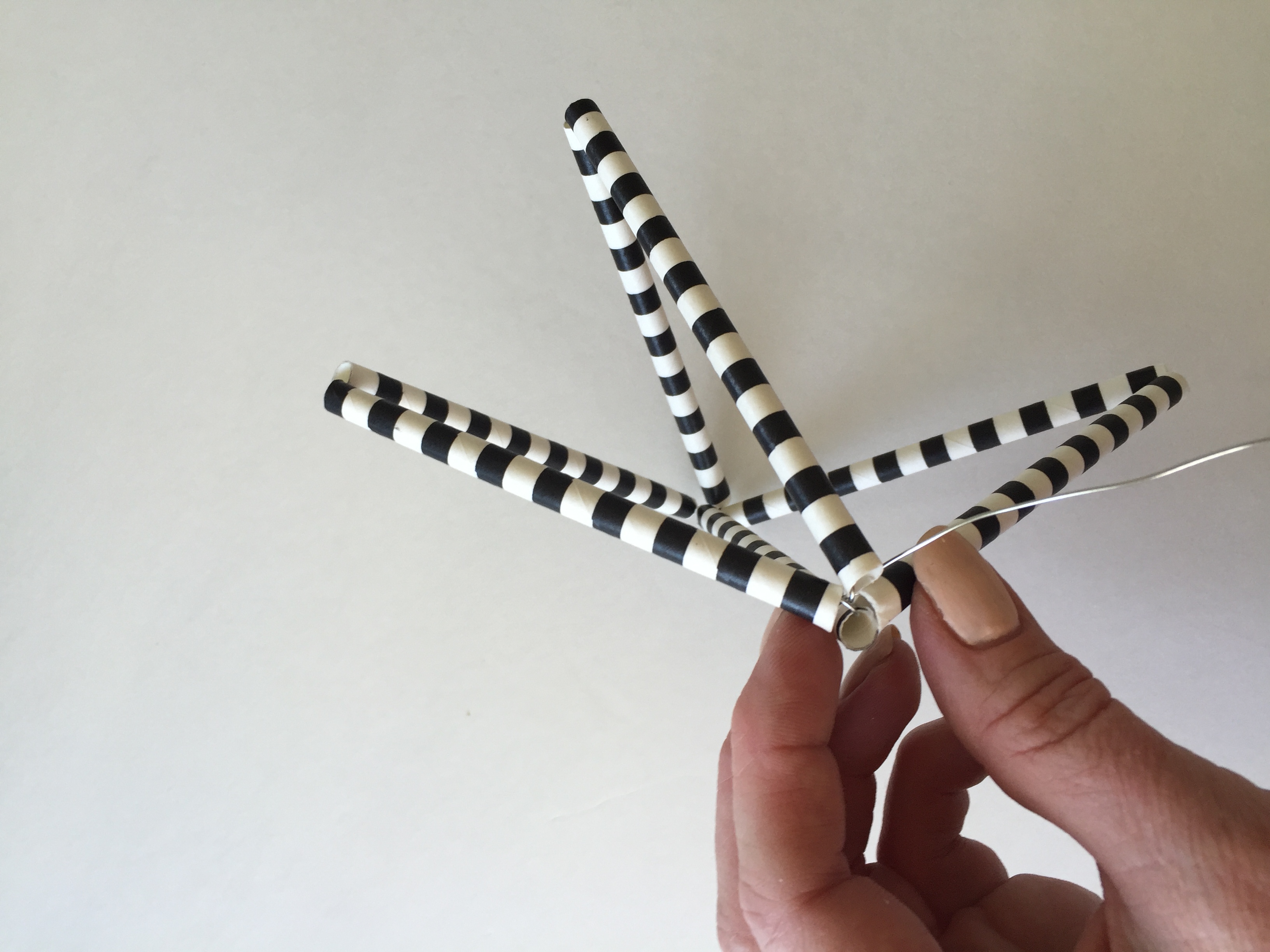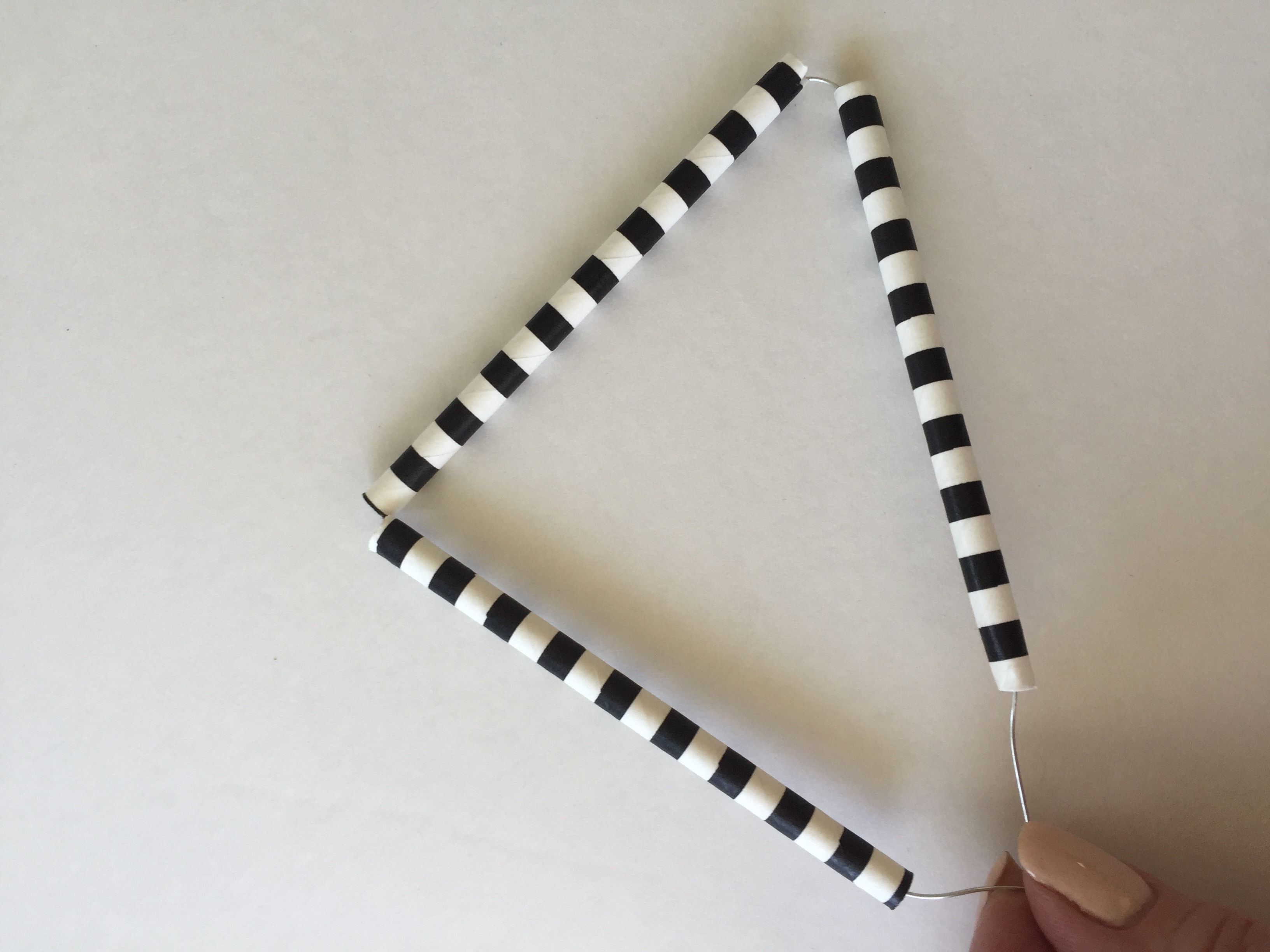 I really like the idea of spray painting the straws to match the wedding, how ever if you wanted that silver or gold look just get the metallic gold spray paint from Rustoleum you can find it at amazon if its not at Home depot. Some times its hard to find, go figure, and happy geometric shape making.